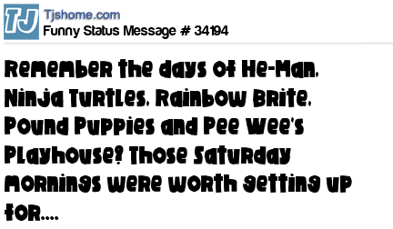 X says Remember the days of He-Man, Ninja Turtles, Rainbow Brite, Pound Puppies and Pee Wee's Playhouse? Those Saturday mornings were worth getting up for....