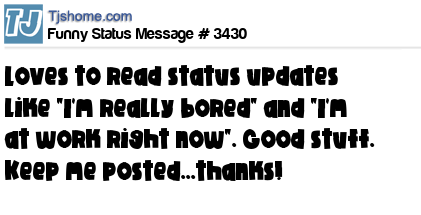 X loves to read status updates like "I'm really bored" and "I'm at work right now". Good stuff. Keep me posted...thanks!