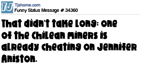 X  That didn't take long: one of the Chilean miners is already cheating on Jennifer Aniston.