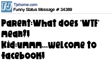 X says Parent:What does 'WTF' mean?! Kid:ummm...welcome to facebook!