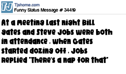 X says At a meeting last night Bill gates and Steve Jobs were both in attendance , when Gates started dozing off , Jobs replied "There's a nap for that"