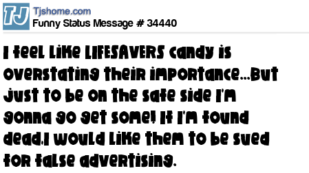 X is I feel like LIFESAVERS candy is overstating their importance...But just to be on the safe side I'm gonna go get some! If I'm found dead,I would like them to be sued for false advertising.