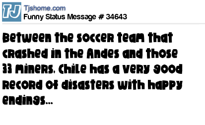 X is between the soccer team that crashed in the Andes and those 33 miners, Chile has a very good record of disasters with happy endings...