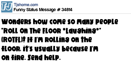 - # 23420 How come so many people Roll On The Floor *Laughing*? If I'm rolling on the floor, it's usually because I'm on fire. Send help.