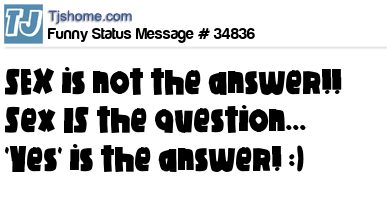 - # 11149 reminding you that Sex is not the answer. Sex is the question. "Yes" is the answer.