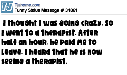 X I thought I was going crazy. So I went to a therapist. After half an hour, he paid me to leave. I heard that he is now seeing a therapist.
