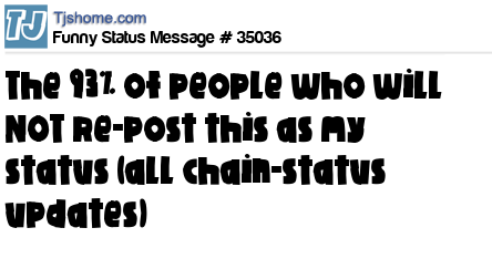 X is the 93% of people who will NOT re-post this as my status (all chain-status updates)