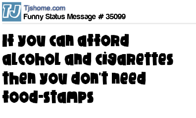 X  If you can afford alcohol and cigarettes then you don't need food-stamps