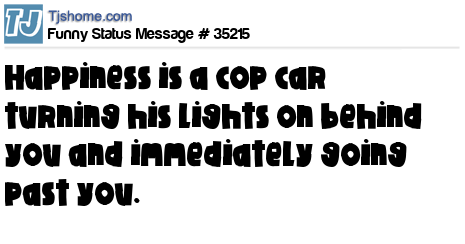 - # 80936 U know that Happiness is a cop car turning his lights on behind you and immediately going past you.