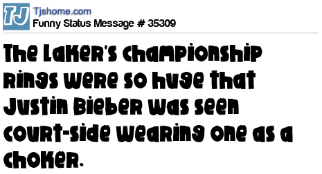 X The Laker's championship rings were so huge that Justin Bieber was seen court-side wearing one as a choker.