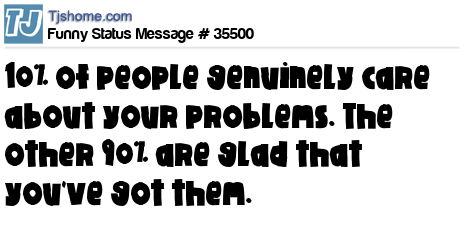 X 10% of people genuinely care about your problems. The other 90% are glad that you've got them.