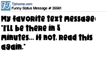 - # 39288 My favorite text message: "I'll be there in 5 minutes...if not, read this again."