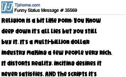 Doesn't matter Atheist. No matter how valid your points are, those who don't agree when it comes to matters of religion will never see your point of view. But keep them coming! There are those of us who find the posts funny!