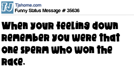 - # 94863 Whenever you're feeling down, remember, you're the sperm that won.