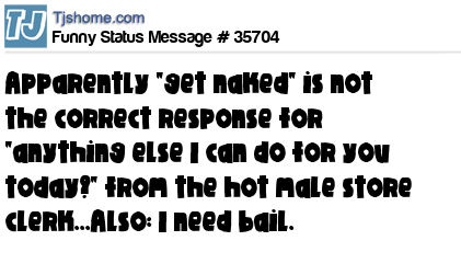 X is Apparently "get naked" is not the correct response for "anything else I can do for you today?" from the hot male store clerk...Also: I need bail.