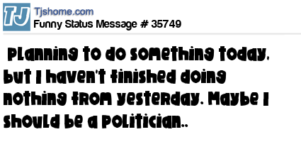 X planning to do something today, but I haven't finished doing nothing from yesterday. Maybe I should be a politician..