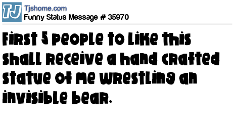- # 36387 First 5 people to like this shall receive a hand crafted statue of me wrestling an invisible bear."