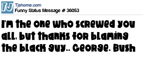 X I'm the one who screwed you all, but thanks for blaming the black guy.. George. Bush