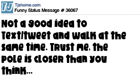 X is Not a good idea to Text/tweet and walk at the same time. Trust me, the pole is closer than you think...