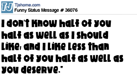 X is I don't know half of you half as well as I should like; and I like less than half of you half as well as you deserve."