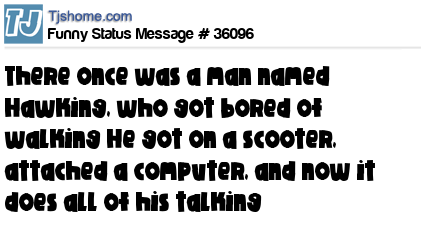- # 32573 - - Stephen Hawking may be a genius, but he is not setting much of an example to kids by just sitting at his computer all day.