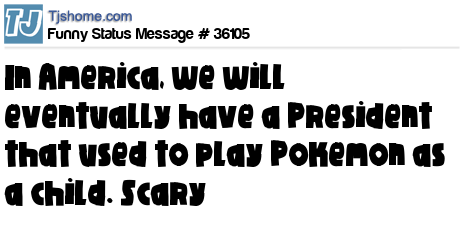 - # 98282 In America, we will eventually have a President that used to play Pokemon as a child. Scary.