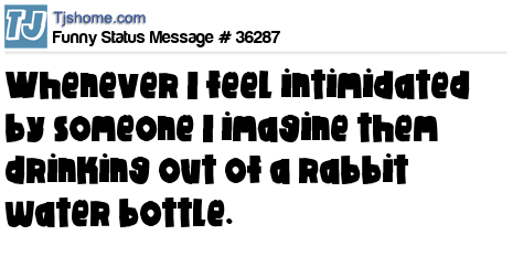 X Whenever I feel intimidated by someone I imagine them drinking out of a rabbit water bottle.