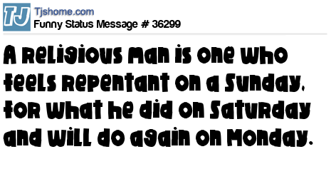 X A religious man is one who feels repentant on a Sunday, for what he did on Saturday and will do again on Monday.