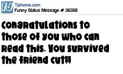 X is Congratulations to those of you who can read this. You survived the friend cut!!