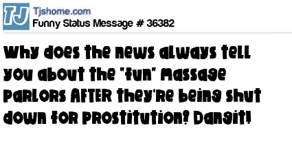 X Why does the news always tell you about the "fun" massage parlors AFTER they're being shut down for prostitution? Dangit!