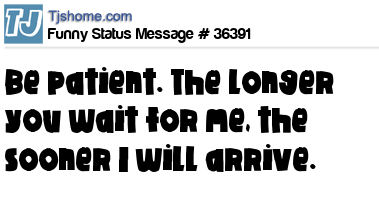 X Be patient. The longer you wait for me, the sooner I will arrive.