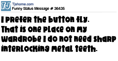 X I prefer the button fly. That is one place on my wardrobe I do not need sharp interlocking metal teeth.