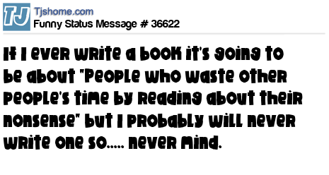 X If I ever write a book it's going to be about "People who waste other people's time by reading about their nonsense" but I probably will never write one so..... never mind.