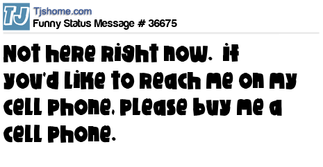 X is not here right now. if you'd like to reach me on my cell phone, please buy me a cell phone.