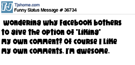 - # 29498 wondering why Facebook bothers to give the option of "liking" my own comment? Of course I like my own comments. I'm awesome.