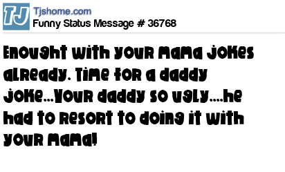 X says enought with your mama jokes already. Time for a daddy joke...Your daddy so ugly....he had to resort to doing it with your mama!