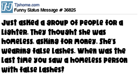 X just asked a group of people for a lighter. They thought she was homeless, asking for money. She's wearing false lashes. When was the last time you saw a homeless person with false lashes?