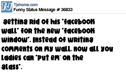 X is getting rid of his "facebook wall" for the new "facebook window". Instead of writing comments on my wall, now all you ladies can "put em' on the glass".
