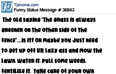 X says The old saying "The grass is always greener on the other side of the fence"....is it? Or maybe you just need to get up off UR lazy ass and mow the lawn, water it, pull some weeds, fertilize it, take care of your own grass and stop looking over the fence