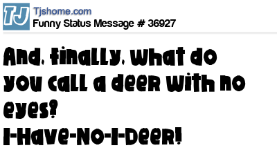 What do you call a deer with no eyes,no legs and no bazinger??A: Still no f***ing eye deer !!!