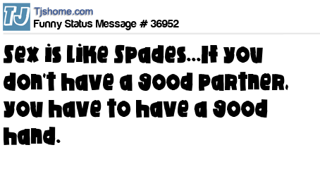 X is Sex is like Spades...If you don't have a good partner, you have to have a good hand.