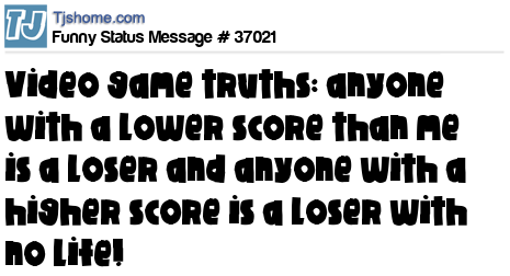 X Video game truths: anyone with a lower score than me is a loser and anyone with a higher score is a loser with no life!