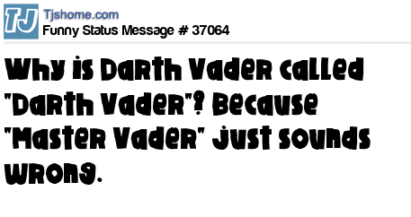 - # 96340 Darth Vader: "Here, I made you some toast." ___Luke: "It's a little on the dark side." ___Vader: ".?." ___Luke: "Lol"___ Vader: "Lol"