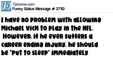 X says I have no problem with allowing Michael Vick to play in the NFL. However, if he ever suffers a career ending injury, he should be "put to sleep" immediately