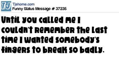 X is Until you called me I couldn't remember the last time I wanted somebody's fingers to break so badly.