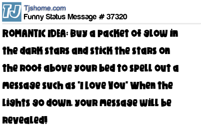 X ROMANTIC IDEA: Buy a packet of glow in the dark stars and stick the stars on the roof above your bed to spell out a message such as "I Love You" When the lights go down, your message will be revealed!