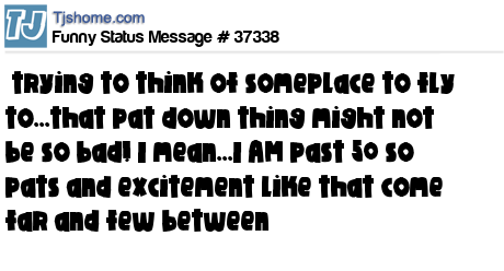X is trying to think of someplace to fly to...that pat down thing might not be so bad! I mean...I AM past 50 so pats and excitement like that come far and few between