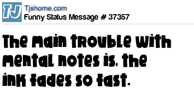 - # 86373 Making mental notes with a pen isn't very smart. I've got ink on my forehead now.