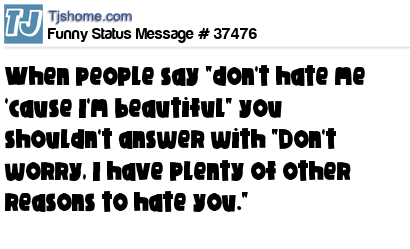 X When people say "don't hate me 'cause I'm beautiful" you shouldn't answer with "Don't worry, I have plenty of other reasons to hate you."