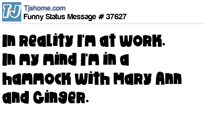 X In reality I'm at work. In my mind I'm in a hammock with Mary Ann and Ginger.
